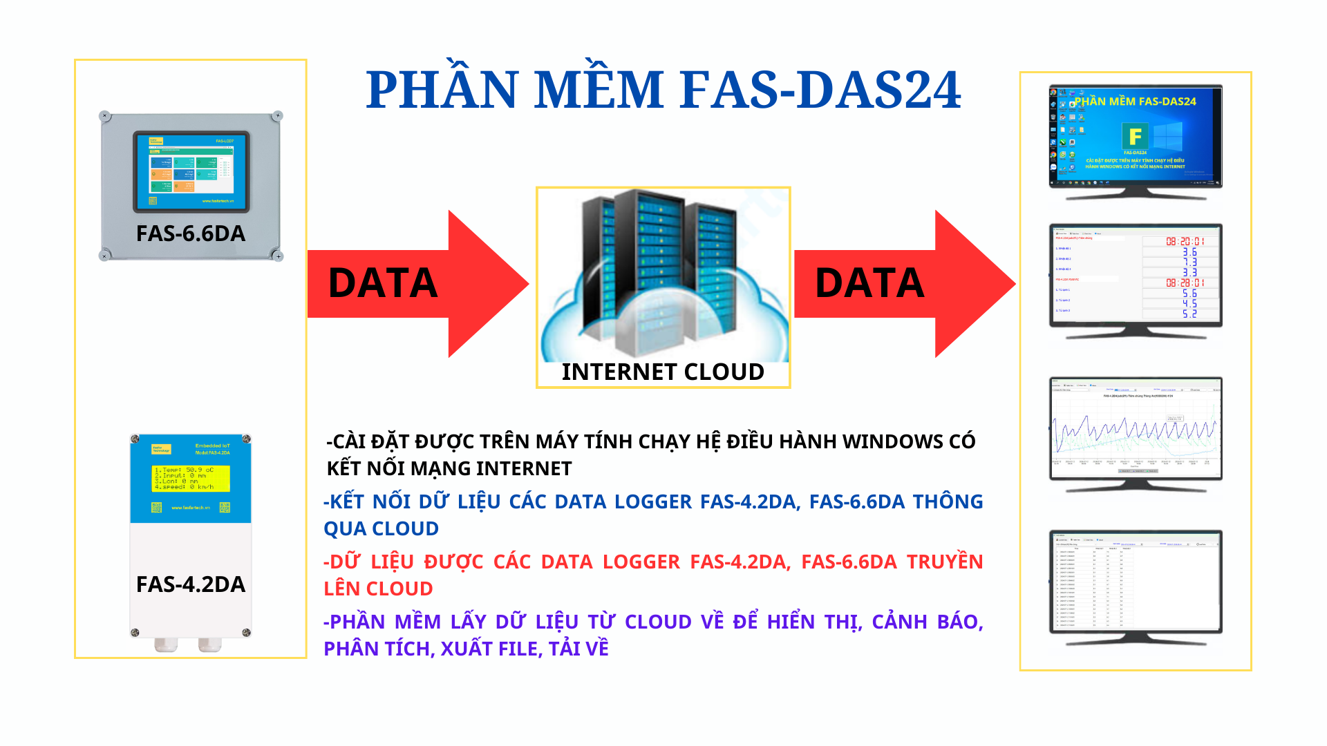 - Kết nối, thu nhận dữ liệu từ các Data Logger FAS-6.6DA, FAS-4.2DA thông qua Cloud.