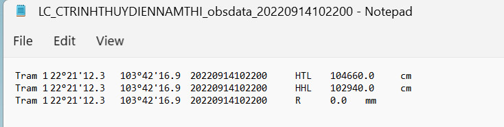 Tên tệp dữ liệu: MaTinh_TenCongtrinh_obsdata_YYYYmmddhhMMss.txt