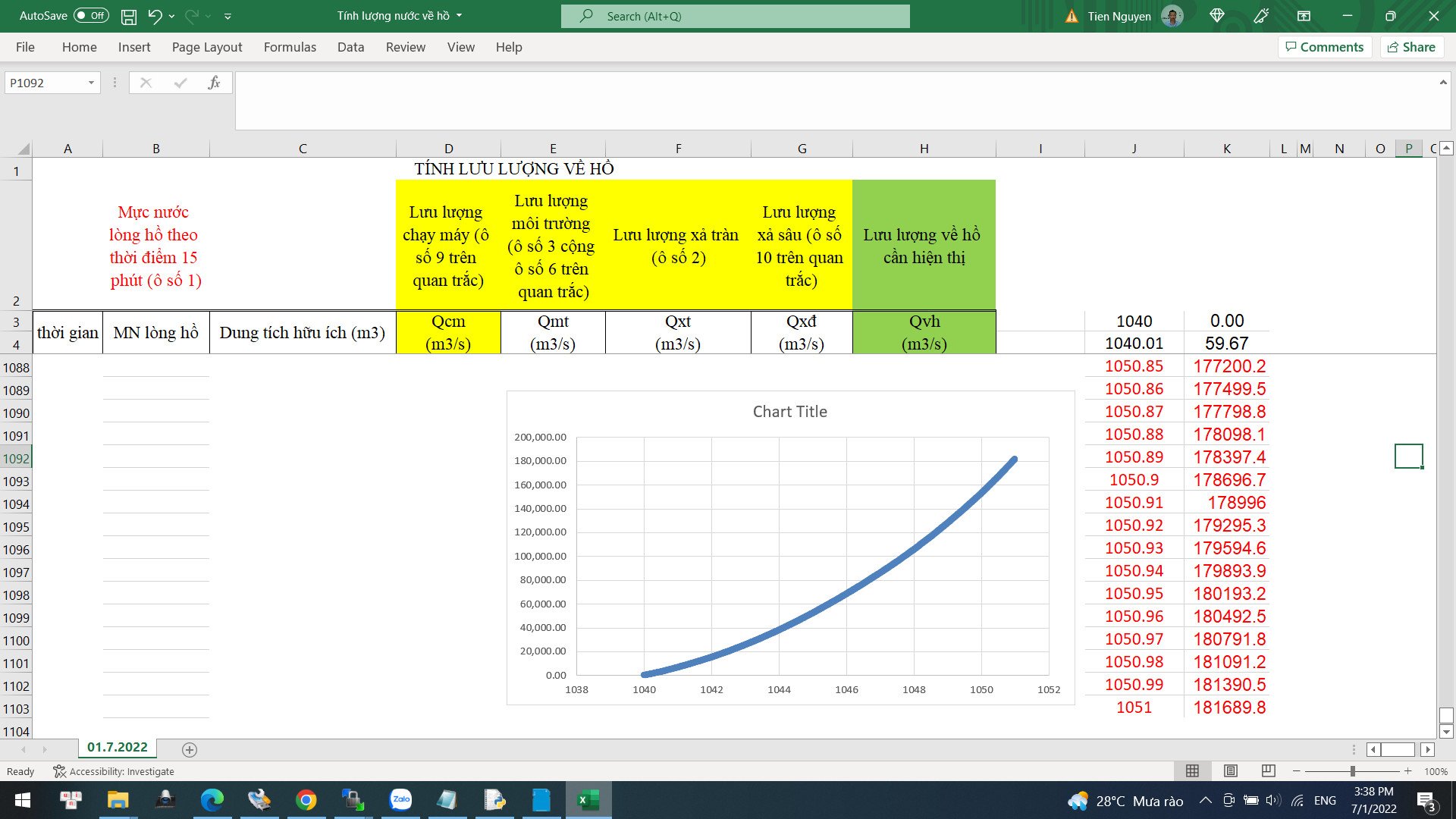 Ví dụ:Từ file excel số liệu lưu lượng về hồ của hệ thống quan trắc thủy điện như sau: