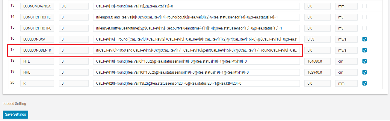 Sẽ có công thức tính lưu lượng về hồ để cài đặt trên data logger: