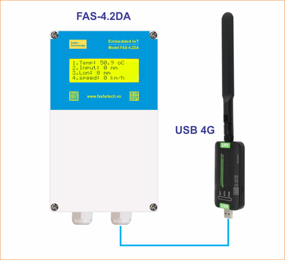 Thiết bị của Fasfartech sử dụng được với sim 3G/4G của cả 3 nhà mạng phổ biến ở nước ta là viettel, vinaphone, mobiphone. Sim được lắp vào usb3G và kết nối với data logger để làm nhiệm vụ truyền dữ liệu, nhắn tin SMS và gọi điện.
