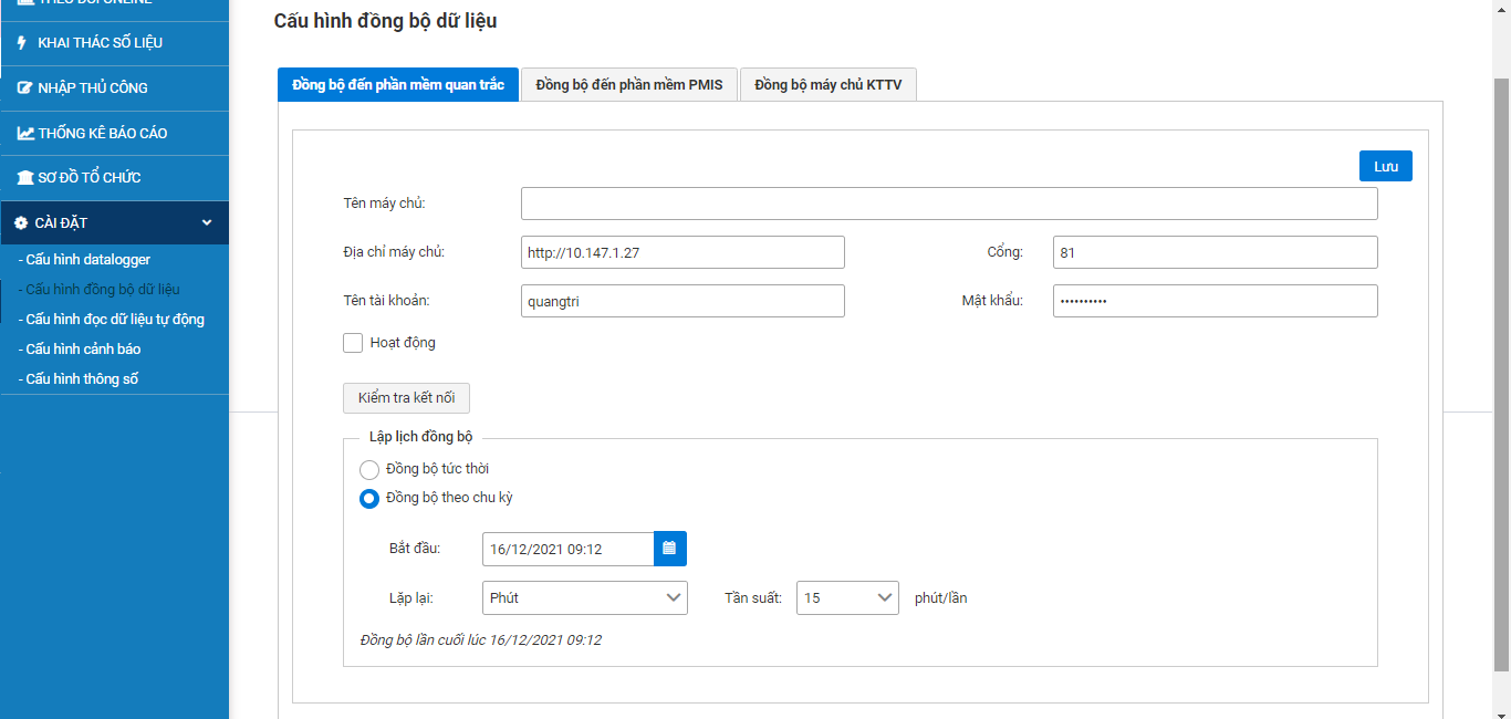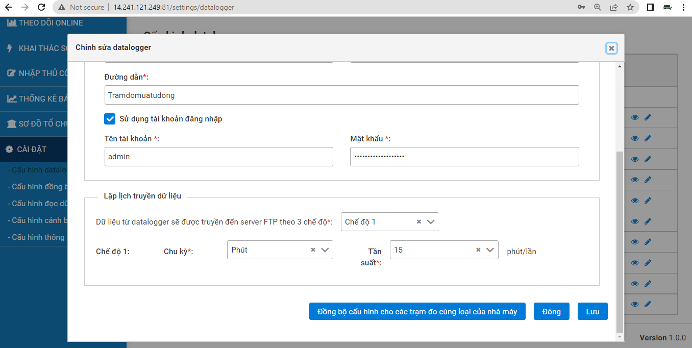 - Cài đặt truyền dữ liệu theo chu kỳ, thời gian cài đặt được từ 1-99 phút.