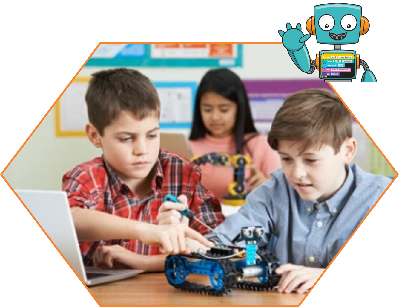 | Học sinh được tìm hiểu, khám phá về robot như cấu tạo Robot, động cơ, hệ thống điều khiển, đèn led, màn hình hiển thị thông tin, ... | |