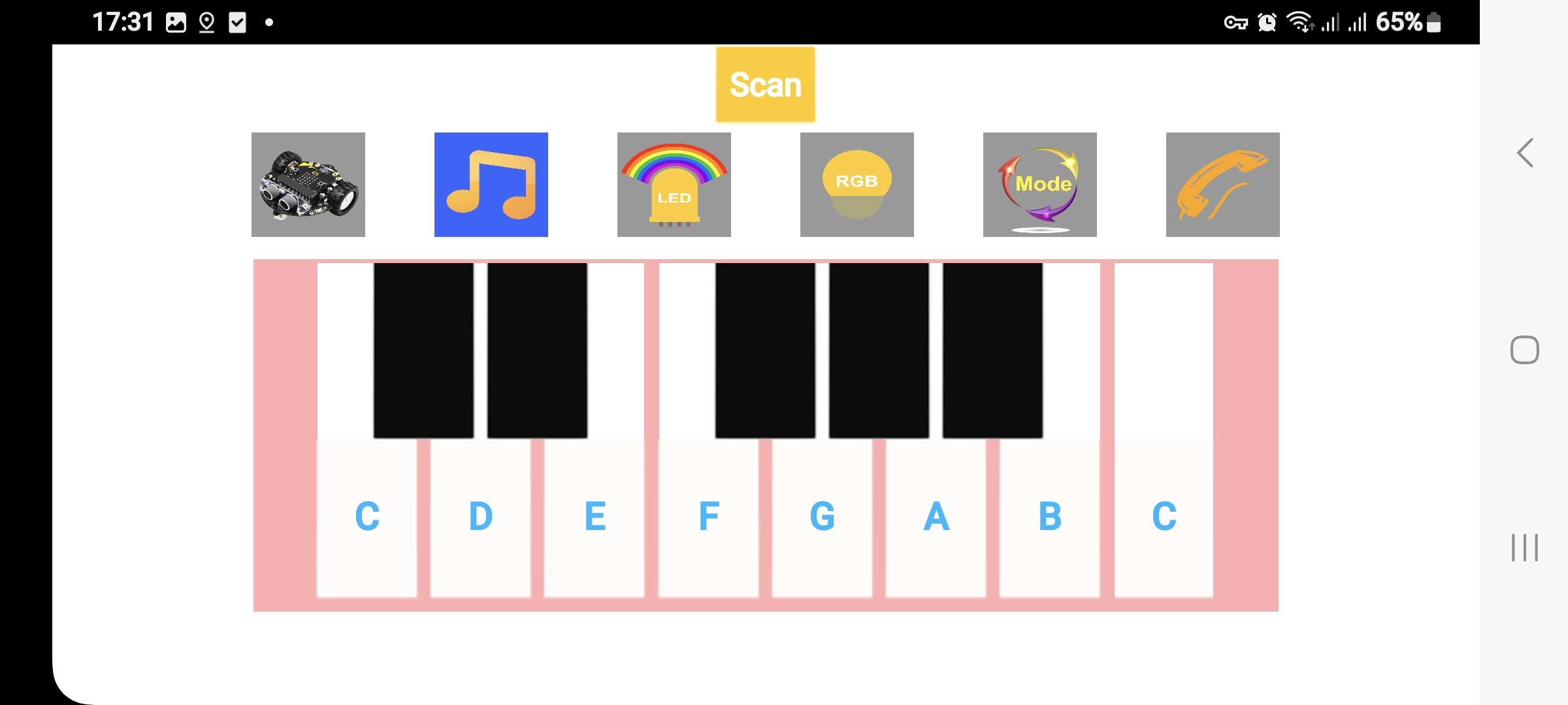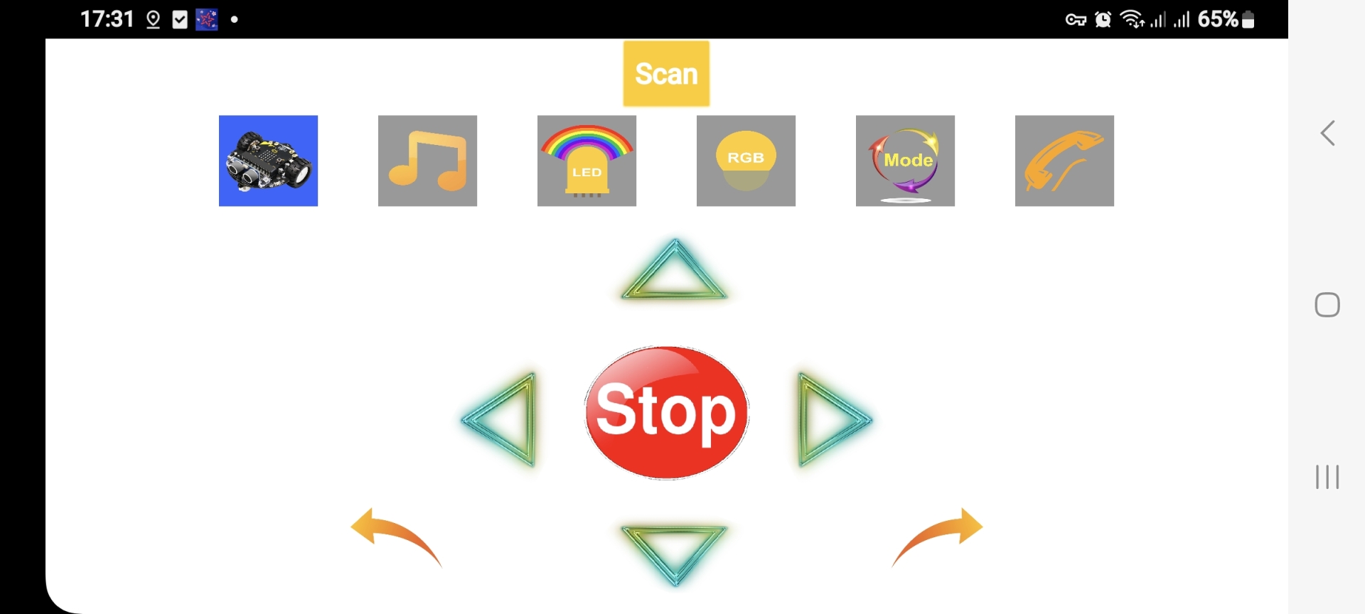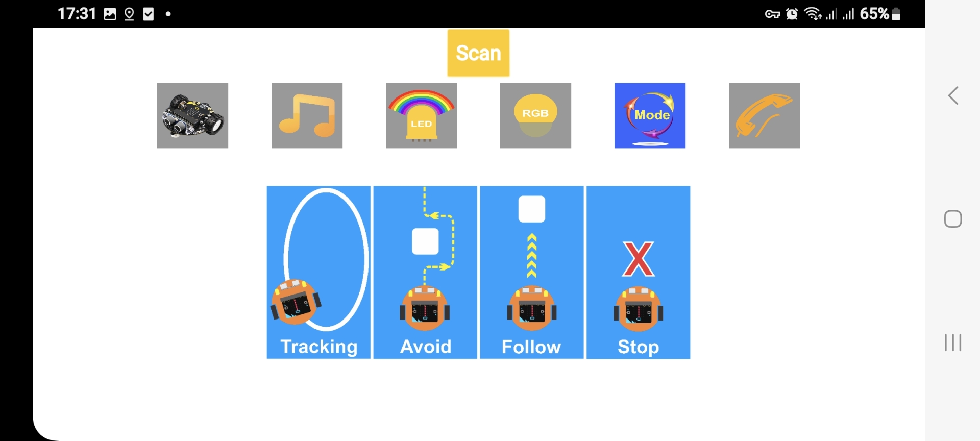 Chúng ta nạp file "microbit-Bluetooth-Control_with_UltrasonicV2.hex" trong thư mục "Android control", sau đó bật nguồn cho Tiny bit. Mở App trên điện thoại và chúng ta đã có thể điều khiển Robot Tiny bit rồi.