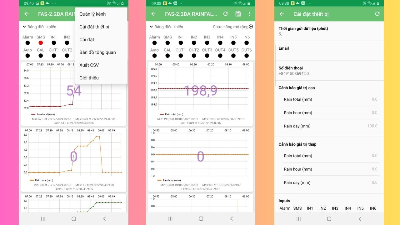 - Có phần mềm giám sát trên máy tính, App trên điện thoại Android hoặc xây dựng hệ thống phần mềm server để quản lý nhiều trạm đo mưa.