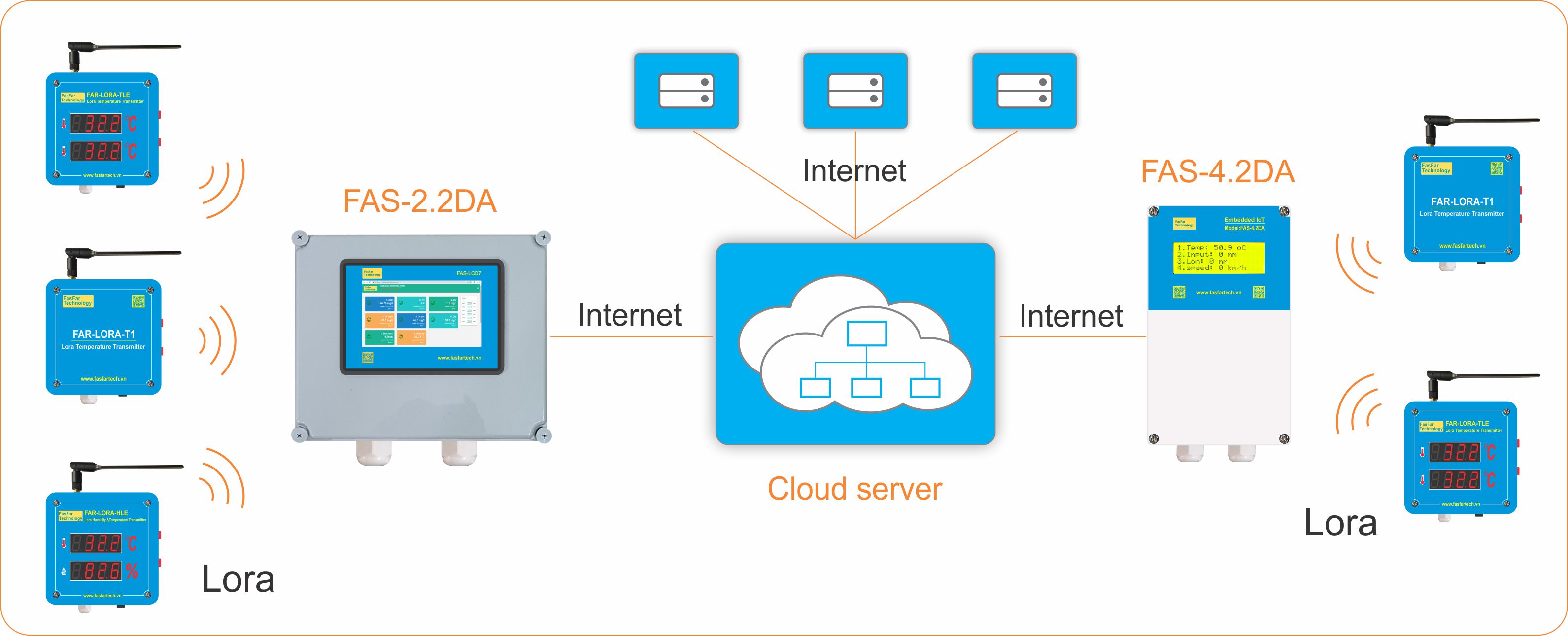 Module FAR-LORA-X, vừa có chức năng đo, hiển thị giá trị đo, vừa truyền dữ liệu lên bộ master qua truyền thông Lora. FAR-LORA-X được thiết kế là thiết bị slave để kết nối không dây với các bộ data logger của Fasfartech như: FAS-2.2DA, FAS-6.6DA, FAS-4.2DA.