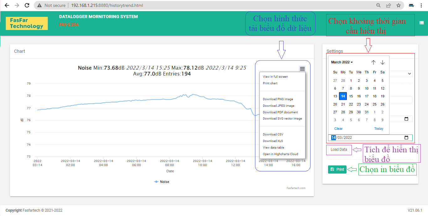Phần mềm FAS-DAS24 Kết nối, thu nhận dữ liệu từ Data Logger FAS-6.6DA thông qua Cloud