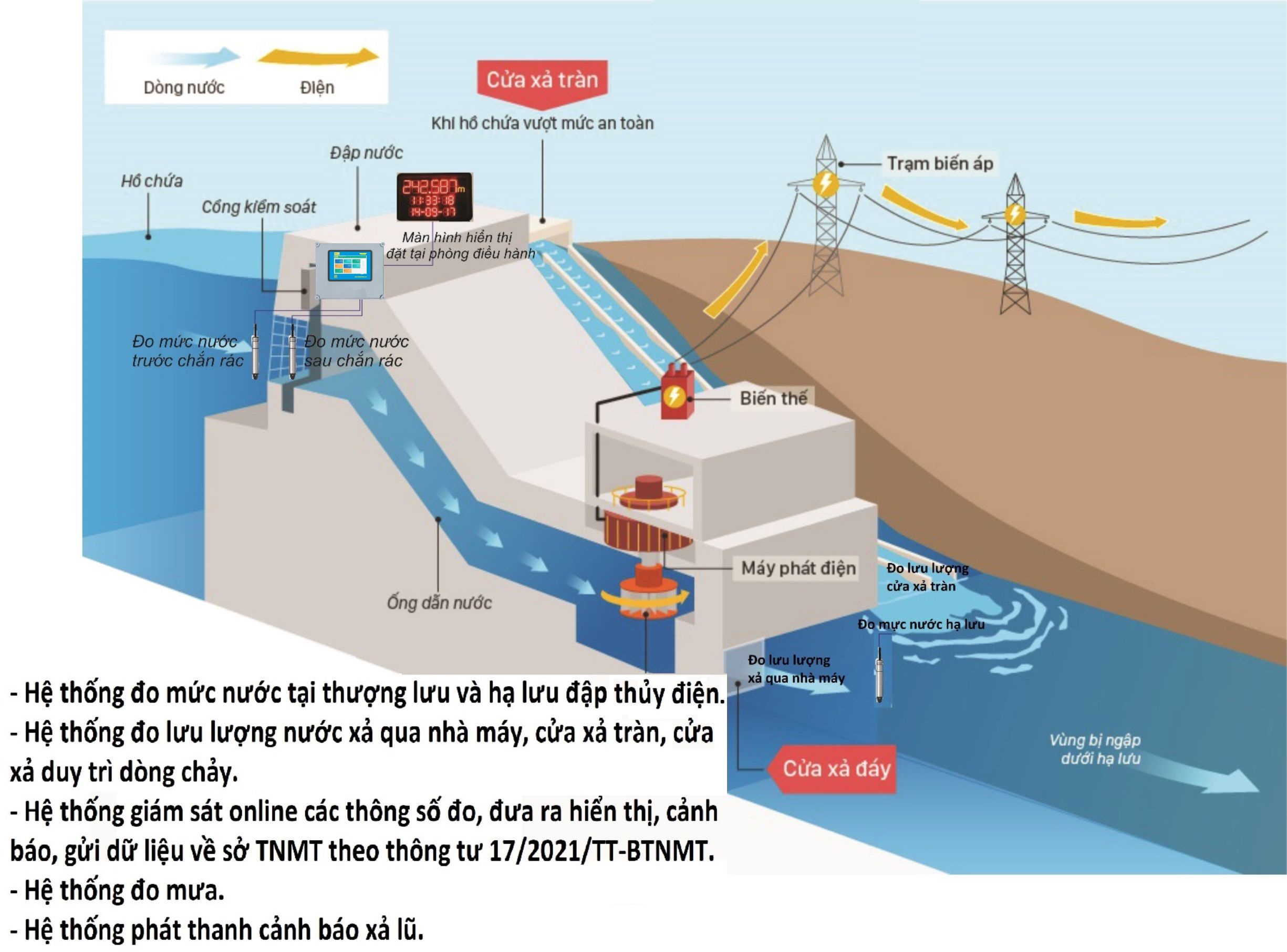 Giải pháp quan trắc lưu lượng, mực nước, đo mưa của sông, hồ, đập thủy điện: