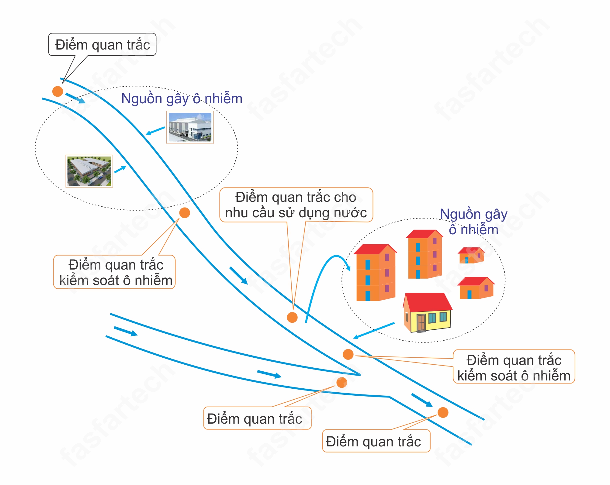 - Các điểm quan trắc để kiểm soát mức độ ô nhiễm nước