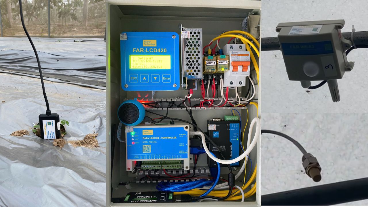 Hệ thống bao gồm các cảm biến nhận biết nhiệt độ, độ ẩm, cường độ ánh sáng bên trong (và bên ngoài) nhà kính, hệ thống quạt thông gió để đối lưu không khí, hệ thống đèn chiếu sáng để có thể tăng cường ánh sáng khi cần thiết, trạm đo thời tiết để biết các thông số: cường độ bức xạ mặt trời, cảnh báo mưa, tốc độ gió, lưu lượng mưa,... Mục đích giúp nhà kính, nhà màng duy trì ở điều kiện mong muốn.