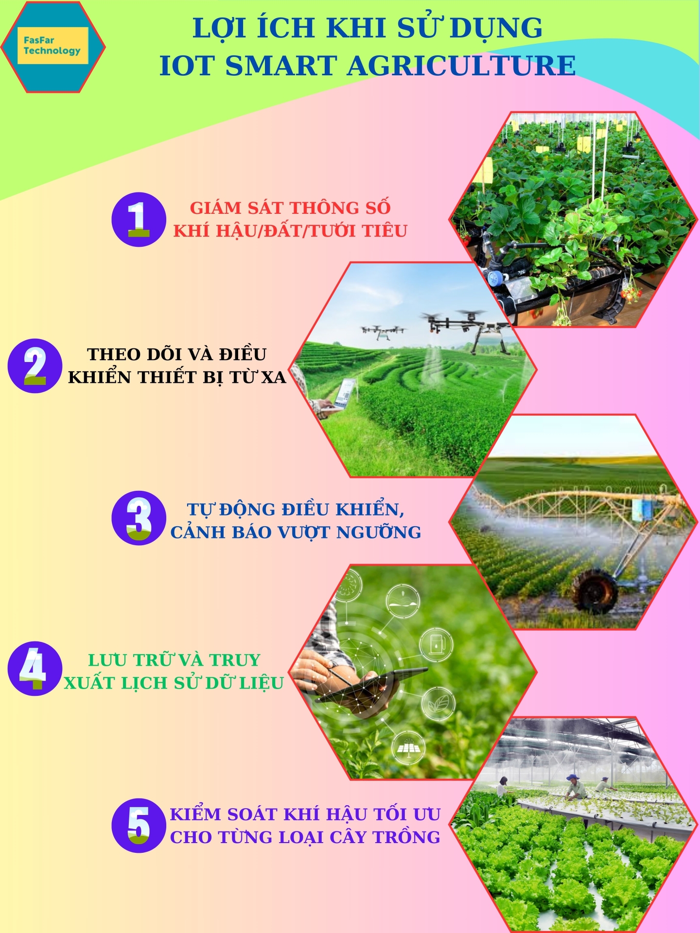 Việt Nam là một trong những nước sản xuất nông nghiệp lớn trên thế giới, nhưng lại chịu ảnh hưởng nặng nề của biến đổi khí hậu; tư duy sản xuất vẫn còn manh mún, lạc hậu… do đó hiệu quả thấp, sản phẩm gặp nhiều khó khăn khi tiếp cận những thị trường đòi hỏi tiêu chuẩn cao trên thế giới. Việt Nam cần có những thay đổi, hiện đại hóa trong quy trình sản xuất nông nghiệp để tối ưu chi phí, nâng cao chất lượng sản phẩm, cũng như có những giải pháp để sản xuất nông nghiệp không còn quá phụ thuộc vào yếu tố môi trường và thời tiết. Do vậy việc phát triển một hệ thống thông minh sử dụng IoT (Internet of Thing - Internet vạn vật) cho nông nghiệp là xu hướng tất yếu. Điều đó sẽ giúp cho nền nông nghiệp có các ưu điểm vượt trội so với canh tác truyền thống như giảm chi phí nhân công, kịp thời ứng phó với thời tiết, tối ưu hóa năng suất, phân tích tính toán được các yếu tố như đất đai, nước, môi trường không khí, tưới tiêu và kiểm soát dịch bệnh...