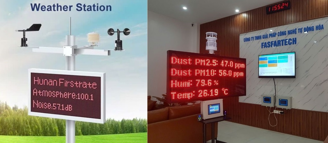 Một số trạm quan trắc phổ biến kết nối màn hình Led hiển thị thông số đo: