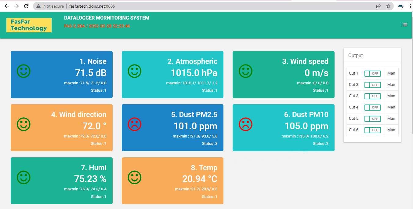 - Thiết bị thu thập, lưu trữ và truyền dữ liệu đến sở TNMT là bộ Datalogger Fas-2.2DA có màn hình hiển thị LCD 7 inch.