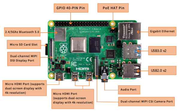 - Tính cho tới phiên bản 2018 là Raspberry Pi 3 Model B+, Raspberry Pi 3 Model B+ có: 4 cổng USB 2.0, 1 Ethernet, Wifi, Bluetooth, GPIO.