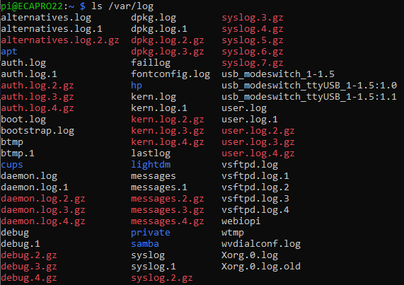 Liệt kê các file trong thư mục khác, chẳng hạn như /var/log:
