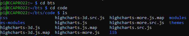 Sau đó vào thư mục con của "bts" là thư mục "code", rồi liệt kê các file trong thư mục "code".