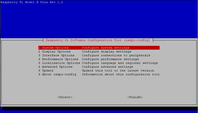 Một trong những lệnh phổ biến nhất cho người dùng Raspbian là sudo raspi-config. Nó mở màn hình cấu hình cho hệ điều hành (cũng có một phiên bản desktop được tìm thấy thông qua menu chính).