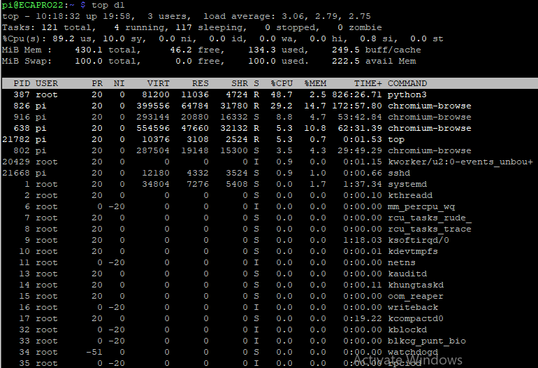 - uptime hiển thị tải trung bình của Raspberry Pi.